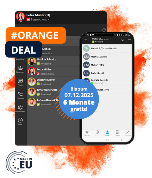 Mehr Farbe für deine Telefonie! Vom 24.11. bis 07.12.2025 gibt es bei ecotel ein besonderes Angebot für deine Business-Kommunikation: Mit dem Code ORANGEDEAL sicherst du dir 6 Monate gratis für die Cloud-Telefonanlage und dem SIP-Trunk to go. Starte jetzt in ein neues Geschäftsjahr voller Flexibilität und Souveränität mit unseren smarten Telefonielösungen!